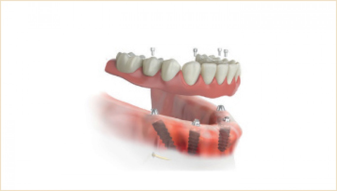 Implant retained dentures or full bridges may be used to replace all the teeth on the top or bottom jaw by attaching the appropriate prosthesis to several implants.